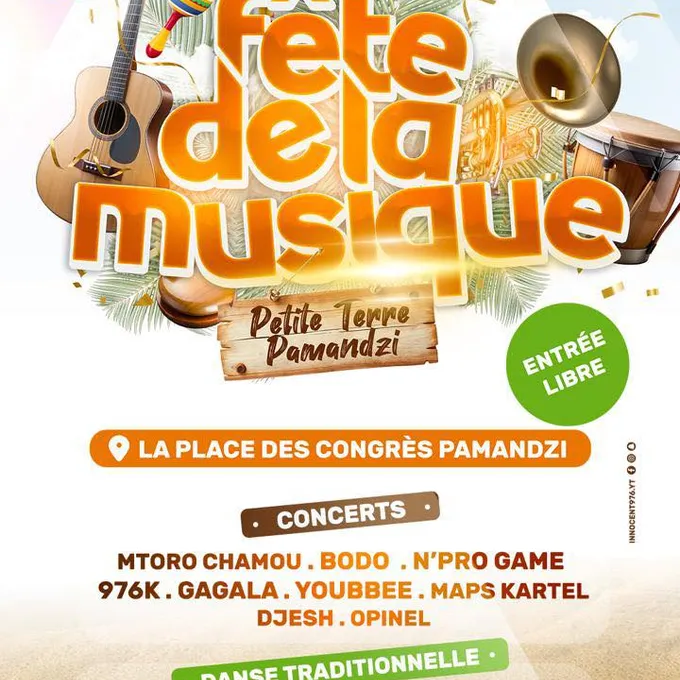 🎶 La commune de Pamandzi vous donne rendez-vous ce samedi 21 juin à partir de 14h, sur la Place des Congrès, pour une Fête de la Musique placée sous le signe de l’énergie locale et du partage !